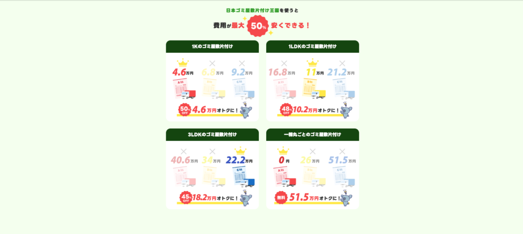 日本ゴミ屋敷片付け王国は、利用者が最適な片付け業者をスムーズに見つけられるよう設計された便利な比較サイトです。