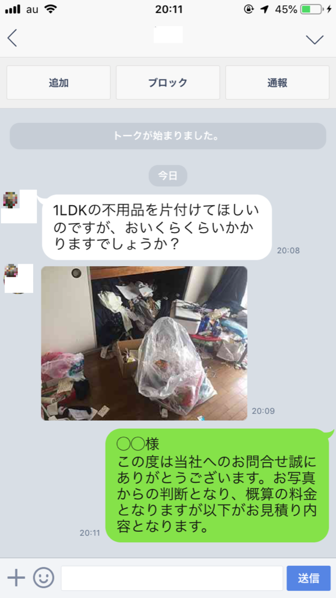 LINEアプリでのお見積りはあくまでの概算となります。正式な金額等につきましては現地でのお見積りが必須となりますのでご了承ください。